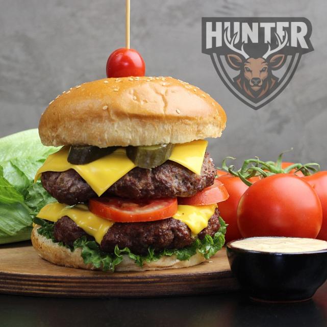 ۲ عدد برگر دست ساز گوشت مخلوط گوساله و گوسفندی ۲۳۰ گرمی، ۲ ورق پنیر گودا، سس مخصوص، کاهو، گوجه، خیارشور، نان گرد