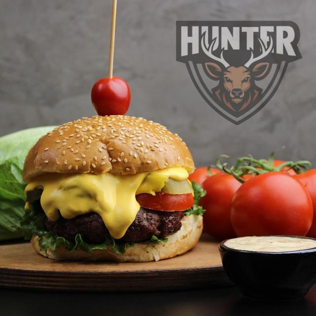 یک عدد برگر دست ساز گوشت مخلوط گوساله و گوسفندی ۲۳۰ گرمی، پنیر دیپ گودا، سس مخصوص، کاهو، گوجه، خیارشور، نان گرد