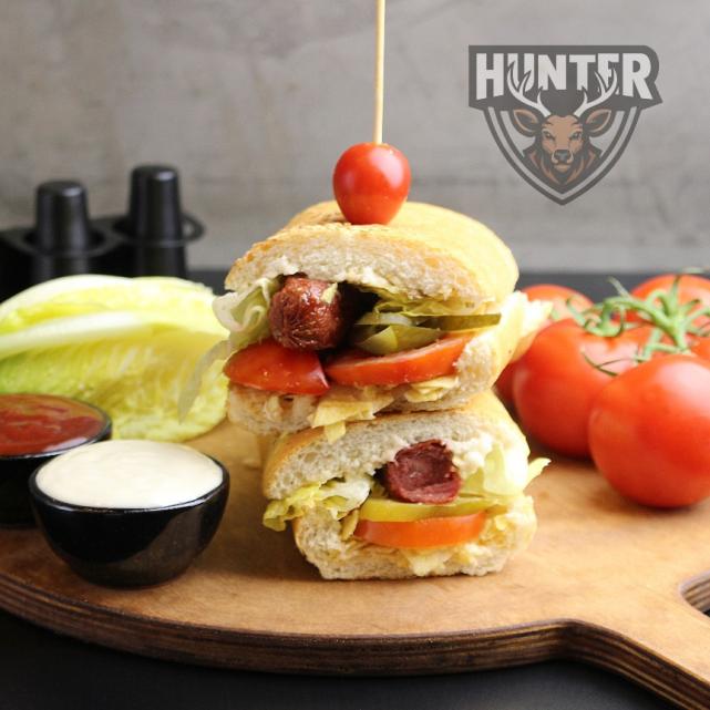 یک عدد هات داگ گوشت ۸۰%، کاهو، گوجه، خیارشور، نان باگتیک عدد هات داگ گوشت ۸۰%، کاهو، گوجه، خیارشور، نان باگت