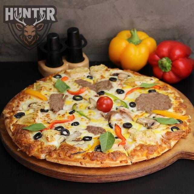خمیر پیتزا ایتالیایی، استیک گوشت گوساله، فیله مرغ ریش ریش شده، بیکن گوشت ۹۷%، قارچ، فلفل دلمه ای، پنیر موزارلاخمیر پیتزا ایتالیایی، استیک گوشت گوساله، فیله مرغ ریش ریش شده، بیکن گوشت ۹۷%، قارچ، فلفل دلمه ای، پنیر موزارلا